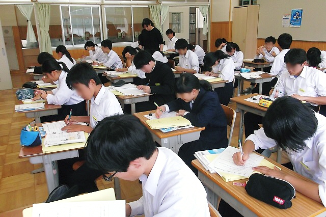 ノートに学習内容をまとめたり、教科書の大切なところにマーカーペンでアンダーラインを引いたり書き込みをしたり、どの生徒も一生懸命でした。