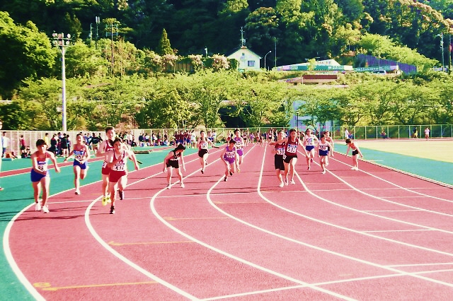 新緑の朝熊山の麓、初夏の陽射しを受けながら、選手たちは、走・跳・投の各種目に出場し、全力で頑張りました。