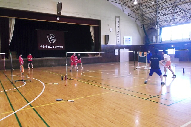 ◇バドミントン部:伊勢宮川中学校との合同練習〔本校体育館〕