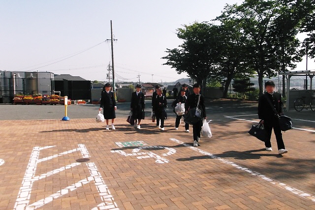 生徒たちは、朝から、アルミ缶の入った大小様々な大きさのビニール袋を携えて登校しました。