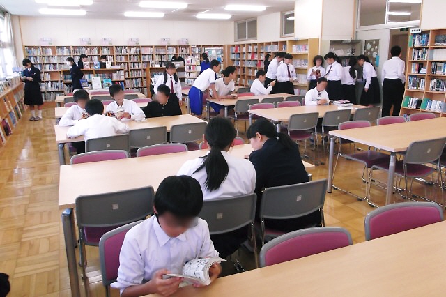 図書委員の生徒たちは、カウンターで、貸出の対応をしたり、図書日誌をつけたりして働いていました。