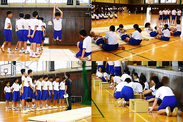 次の種目に移動し、別の班が測定を行っている時は、各種目の待機場所で整列して座って待ちました。
