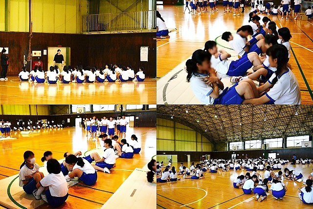 全校生徒が体育館に移動・整列し、体育科の河村先生が全体説明と諸注意を行いました。