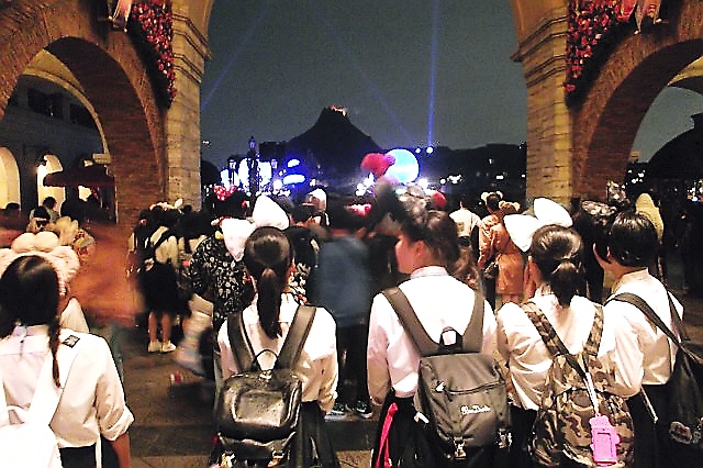 ◆13時25分、ディズニーシー入口でグループ別に写真撮影を行い、生徒たちはいざ夢の国へ出発して行きました。