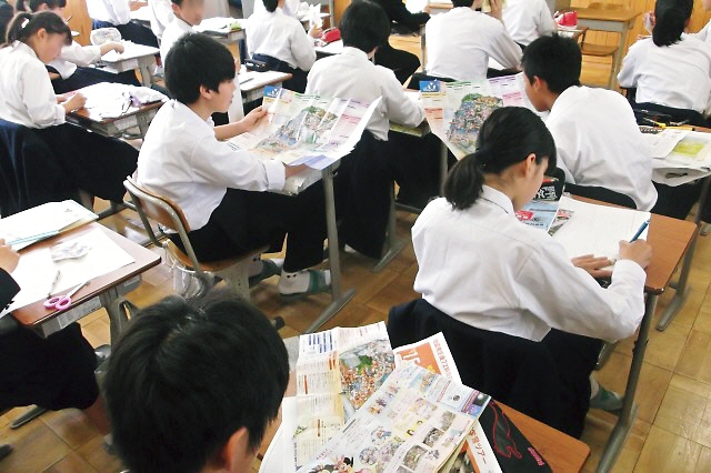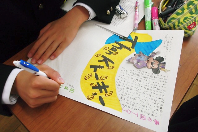 生徒たちは、事前の連絡で、しおりやパンフレット、ハサミやカラーペンなどを用意。