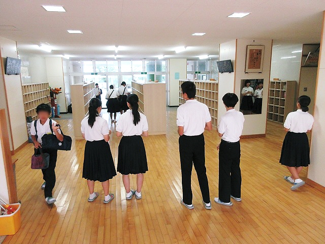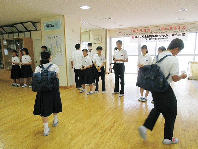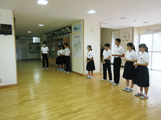 今日は、生徒会本部役員と各学年2組の級長・副級長が生徒昇降口前のロビーに立ちました。