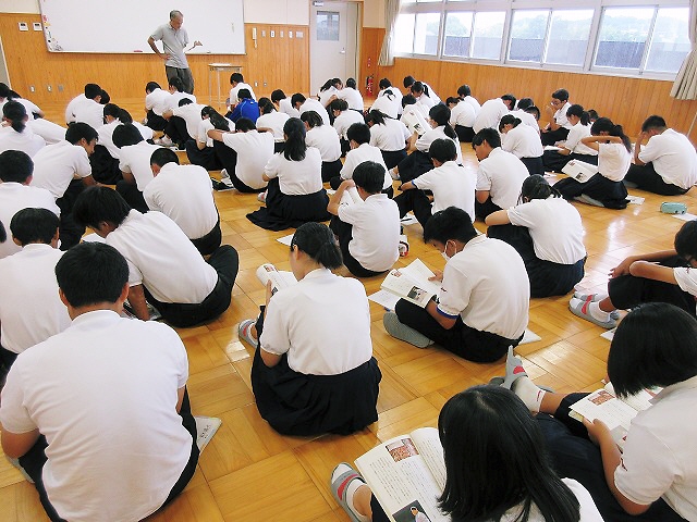 生徒たちは、目線を河村先生に向け、真剣な表情で話を聞きました。