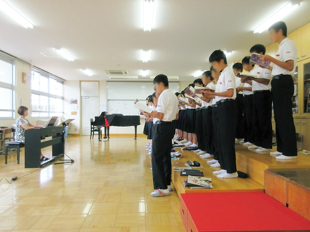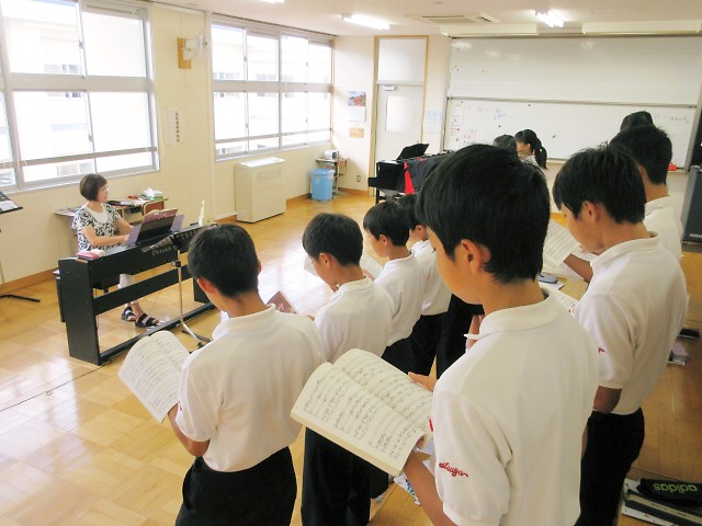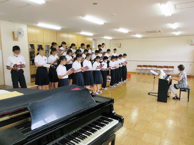 歌声に引き寄せるかのように音楽室まで歩いて行くと、2年2組の生徒たちが音楽の授業で合唱練習に取り組んでいました。