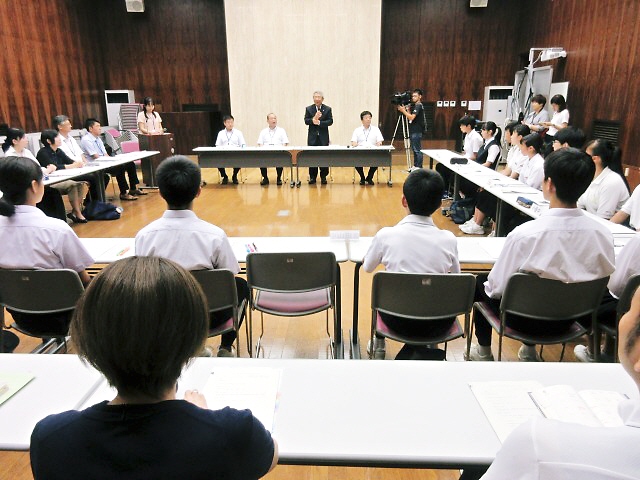 また、生徒を引率する教育委員会の担当者や学校の先生方も挨拶をしました。