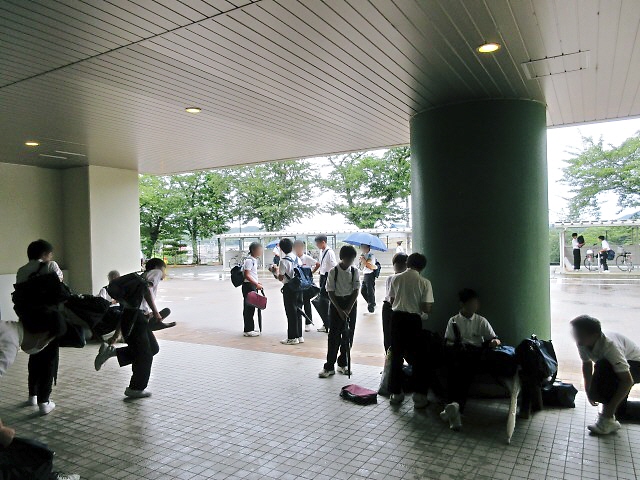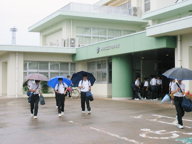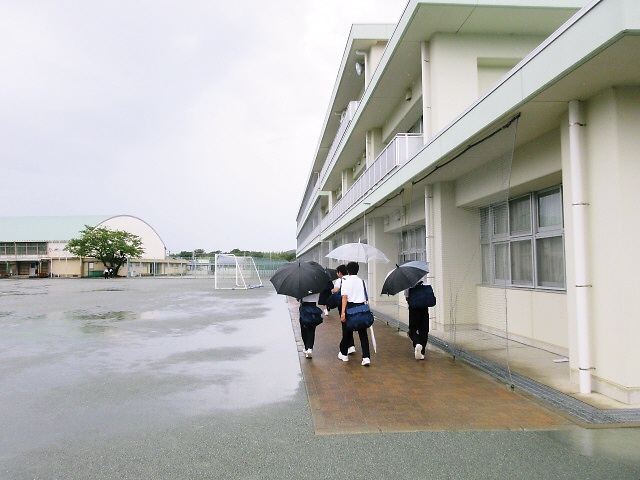 午前中3限の日課を終え、小雨の降る中、生徒たちは元気に下校しました。