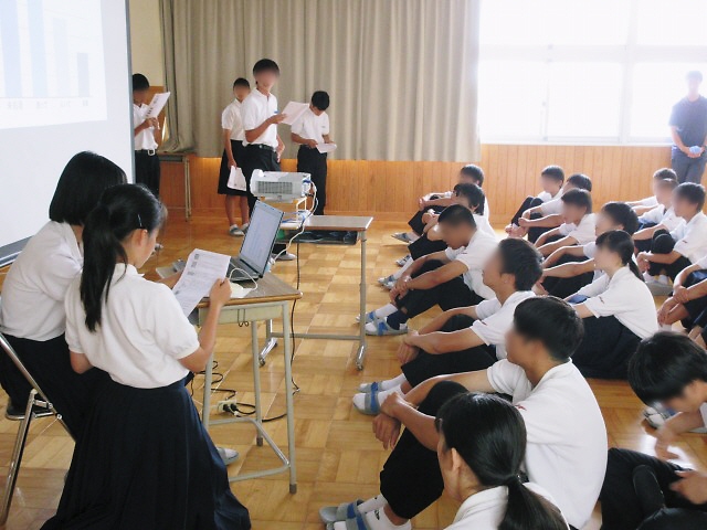 そして、3限目は体育館に全校生徒が集合して、集会を行いました。