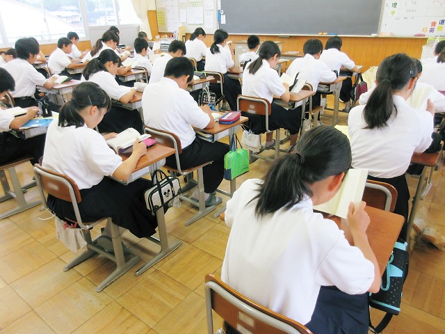 お昼休みには、午後からの英語のテストに備えて、教室、廊下、中庭など、いたる所で友達と一緒に勉強する姿が見られました。