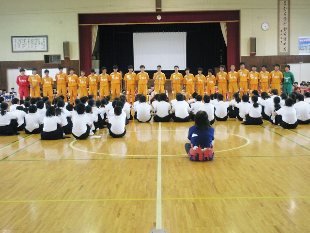 激励する側の生徒たちと向かい合う形で、腰を下ろしました。