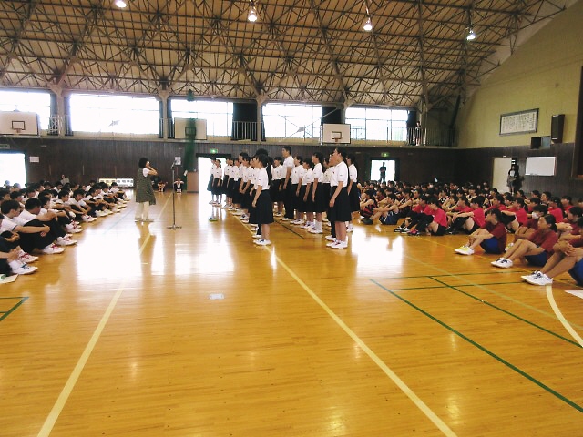 ◆それぞれの大会・コンクールでの生徒たちの健闘を激励するため、5限目に体育館で壮行会を行いました。