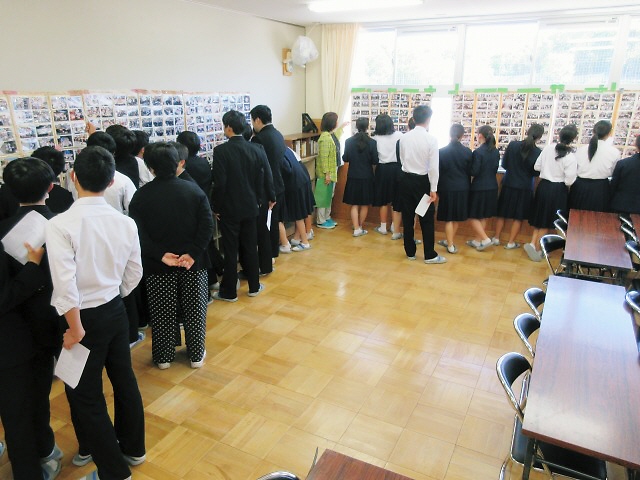現在、1階の多目的教室に、修学旅行の写真が展示されています。