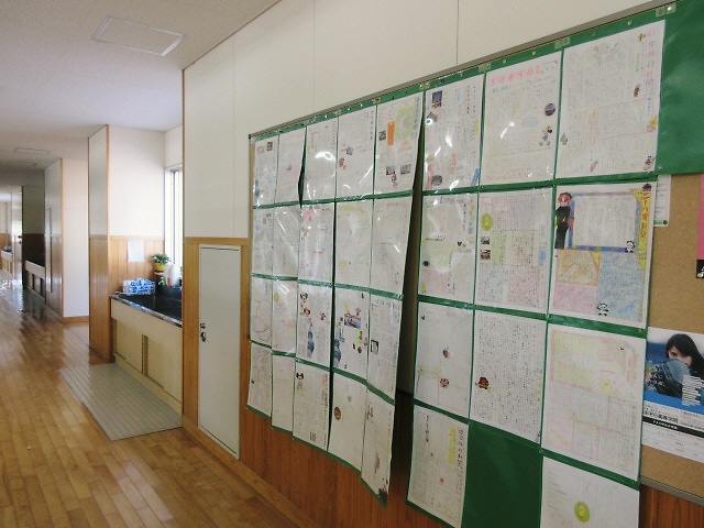 また、廊下には、修学旅行をテーマにした個人新聞が掲示されています。