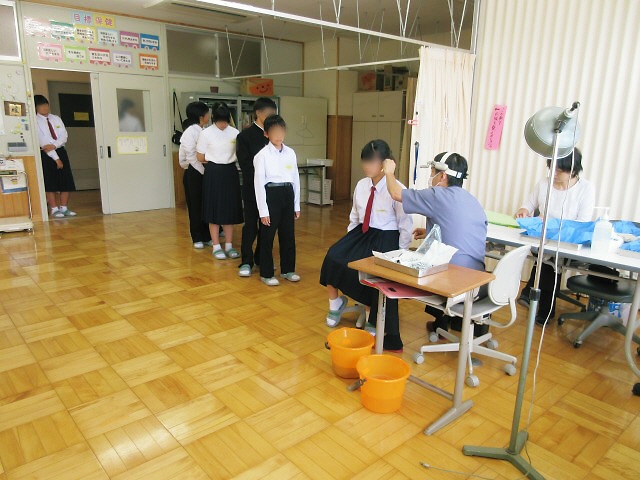 1年生の生徒たちが、午後、耳鼻科検診を行いました。