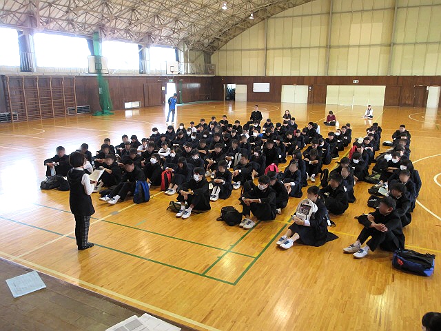3年生の生徒たちは午前中の日課を終え、給食後に下校しました。