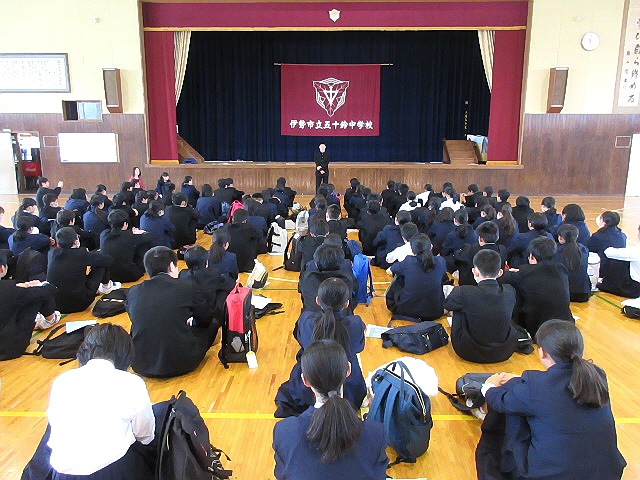 伊勢宮川中学校と駅で一緒になり、新幹線発車までの間、駅構内で並んで列を作って待機しました。