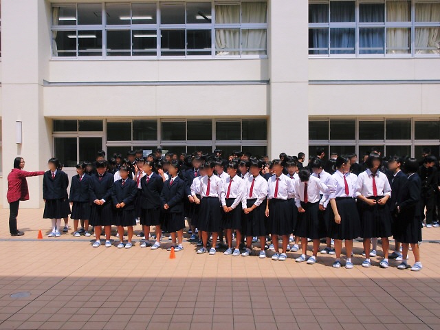 生徒たちは、太陽のまぶしさに耐えながら、素敵な笑顔を浮かべました。