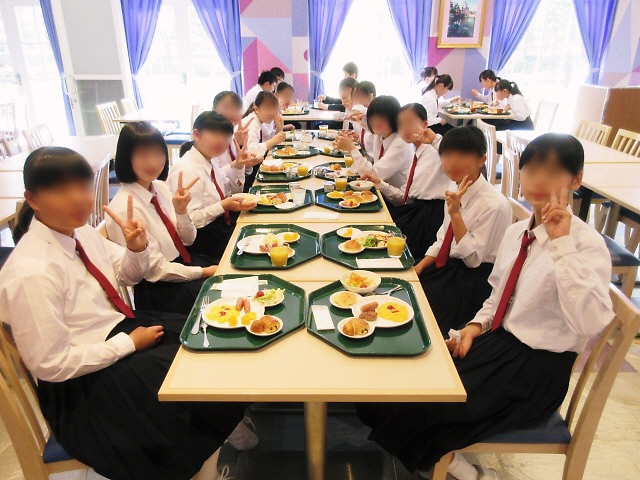 朝食後、部屋に戻った生徒たちは、部屋の片付けと忘れ物の点検をしてバスへ移動。