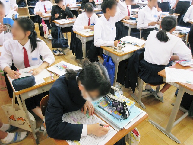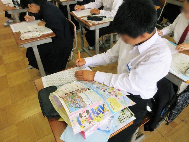 生徒たちは、事前の連絡で、しおりやパンフレット、ハサミやカラーペンなどを用意してきていました。