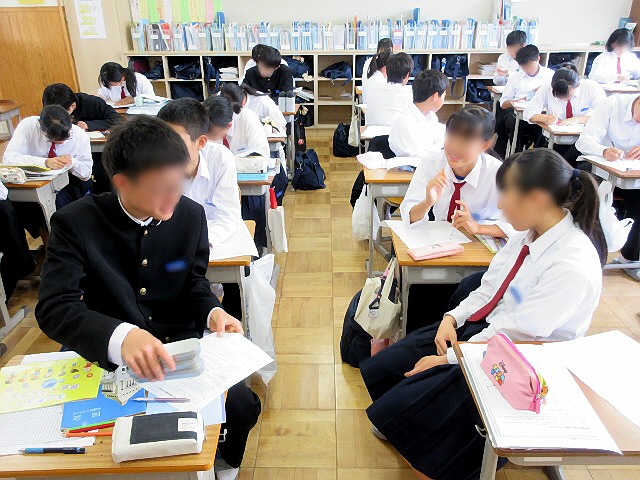 ◆修学旅行を明日に控え、3年生は午前中の日課。