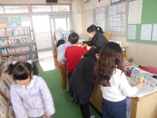 1月27日(火)〜2月2日(月)で、本校の図書室を会場に「ブックマルシェ」が開催されています。これは、小俣図書館の蔵書を、市内小学校の図書館等に展示し、子どもたちに自由に閲覧できるようにする取組です。「ブックマルシェ」を通じて、読んでみたい本を見つけてもらい、小俣図書館に足を運んでもらうことと、読書に興味を持ってもらうための取組です。色々なメディアの発達により、本を読む機会が少なくなっています。読書は、自身のスピードで読めること、自身の想像力を働かせて読むことができるなど、子どもの能力の活性化に有効だと考えます。お家でも、読書の習慣を付けていただければと思います。