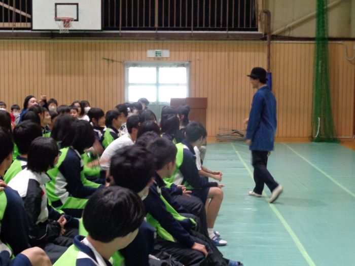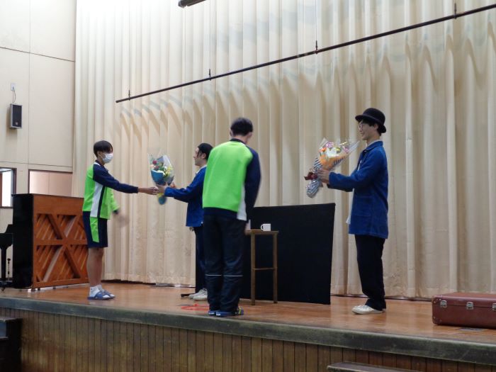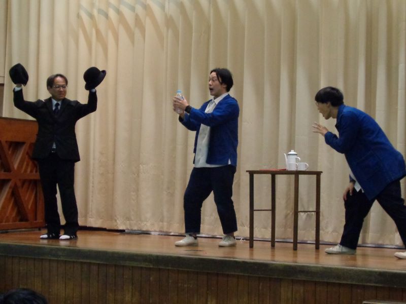 10月29日(水)5限目に城田小学校6年生と合同で芸術鑑賞会を開催しました。今年度は、フィジカルコメディデュオのZEROKO(ゼロコ)さんに来ていただいてパントマイムや、道化師の手法であるクラウニングをべースに遊び心あるパフォーマンスを見せていただきました。教職員や子どもたちも一緒になって楽しい時間を過ごすことができました。