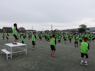 2年生と3年生が体育館に集まり、着任式と始業式を行い、本年度は、教職員6名が転出し、7名の新しい教職員が着任しました。