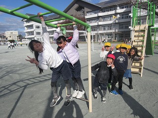 今日の20分休みは、風が強く、気温も8度ほどでした。そんな寒さの中でも、子どもたちの元気な声と笑い声が運動場に広がっていました。雲梯をする子、ブランコをする子、竹馬をする子、ドッジボールをする子どもたちと、その楽しみ方は様々です。写真でもわかるように、強い風が吹くと運動場の砂が巻き上がり、前が見えづらくなることが度々ありました。でも、子どもたちはそんなことなどお構いなしに体を動かして休み時間を楽しんでいました。二学期も残り七日間となりました。
