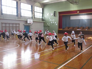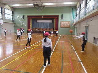 3限目に、2年生の2クラス合同体育が体育館でありました。初めに準備体操を行いましたが、係りの子のとても元気の良い掛け声と数をカウントする全員の声がとても大きく、びっくりしました。続いて、「ネコとネズミ」という体ほぐし運動を行いました。クラス別にネコとネズミに分かれて、逃げる、追いかける、を楽しむゲームです。先生がどちらかの名前を言って、言われた方が追いかけ役となります。子どもたちの反応スピードが速く、追いかけ役はなかなか捕まえることができません。最後は、「サバイバルドッジボール」を行いました。これは、自分以外は全員敵の個人戦です。参加者全員がボールを当て合い、最後まで残ることをめざします。自分がアウトにされた後、自分をアウトにした子がさらにアウトにされると復活できるなど、いろんな復活ルールが設定できるので、ルールを考えるのも楽しみの一つです。体育館中に子どもたちの元気な声が響き渡り、神路通りを歩く人の中には体育館の方を振り向く方もいました。