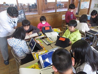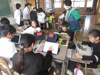 2・3限目、3年生の社会科の時間に伊勢市教育メディア課の方をゲストティーチャーにお招きし、図書(電子も含む)利用をもとにした授業を行っていただきました。初めに、厚生小学校の昔を写した写真を見せていただき、今の様子と比較しました。続いて、学校で学ぶ子どもたちの様子の古今の違いについても意見交流しました。授業の最後は、昔の学校の様子が分かる本の記事から、今との違いについて一人一人がタブレット上にまとめ、全体で交流しました。身近な題材の古今の違いということで、子どもたちは目を輝かせながら、写真や記された文書に目を落としていました。これからも読書を通して、いろんなことに興味を持ってほしいですね。
