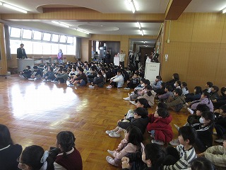 校舎内や運動場に子どもたちの元気な姿が戻ってきました。1限目に始業式を行い、校歌の後、私から「3学期は、『学年のまとめを行う大切な期間』『目標・志をもとう』」という話をしました。続いて、生徒指導担当から「冬休みが終わり、3学期が始まったことから、始業式の「始」という文字を用いて、新たな気持ちでスタートを切り、成長につなげよう」という話がありました。