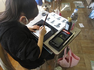 3年生の2限目は、1組が書写、2組は算数の時間でした。書写では、今年は午年ということで、子どもたちが「馬」という文字と絵に挑戦していました。絵では手本をよく見て、自分のアレンジも入れながらかわいい馬の絵をかいていました。算数は長さの勉強で、1mの二分の一が50センチであることを学んでいました。先生の説明をしっかり聞く姿がとても立派に見えました。