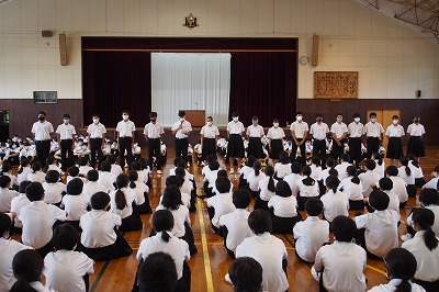 夏の県総体伊勢度会予選、通信陸上、吹奏楽コンクールに参加する部活動の壮行会が行われました。各部ともこれまで取り組んできた練習の成果や、それぞれの思いをこの試合、コンクールで思いっきり発揮し、自分たちらしく、精一杯、力を出してほしいと思います。