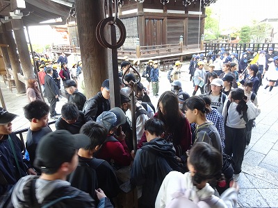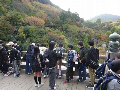 朝はほとんどの部屋が自分たちで起きてきてしっかり身支度していました。朝食も元気に食べていました。全員無事に清水寺に出発しました。