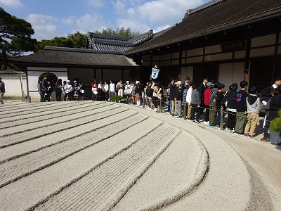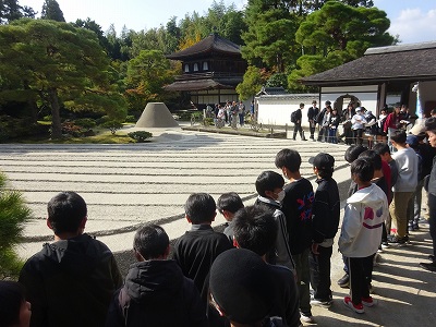 銀閣寺では、授業で学んだことを思い出しながら、美しい庭園を見て回りました。 次は太秦映画村に向かいます。