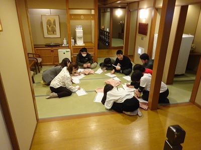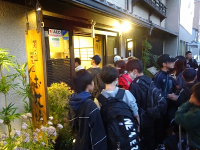 予定より早く東本願寺の前にある宿に到着しました。全員元気にしています。これから部屋長会議をして、夕食です。