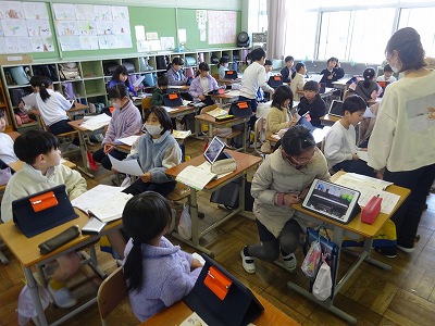 2年生が国語の授業で「読みたい本の探し方」を学びました。図書室に行き、学校司書さんに、どうしたら自分にぴったりの読みたい本が探せるのかを教えてもらいました。最初に司書さんの大好きな本を読み聞かせしてもらってから、読みたい本をどうやって探すかを説明してもらいました。探すときのキーワード「表紙」「書名」「書いた人」「同じ棚、同じなかま」「シリーズ」を、丁寧に説明してもらいました。早速今自分が読みたい本を探して、借りていました。本の探し方が上手くなるように、今後も練習していきます。