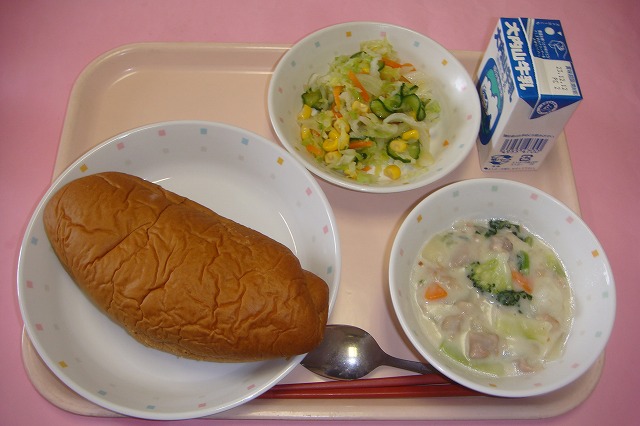 こくとうパン牛乳ふゆやさいのくりーむにフレンチサラダ