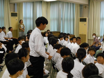 本日は6限目を利用して、後期生徒会本部役員選挙の立会演説会が行われました。私はオンライン会議があったので、残念ながら参加できなかったのですが、みんな立派に応援演説や決意表明が出来ていたようです。定数4に対して候補者も4人でしたので、信任投票となりましたが、やる気のある人を後押しするような学校であってほしいと願っています。