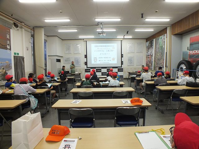 社会科の学習の一環で、大規模工場の見学に行きました。重たいタイヤの材料や出来上がった商品を、機械が運ぶ様子などを見学しました。また材料のにおいといったことも、学校ではわからないことを学びました。