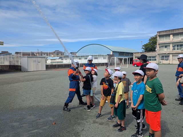 また、プールから採水し、放水する体験や、水消火器での消化体験など、たくさんの体験をしました(写真の掲載は、後日)