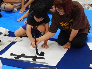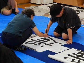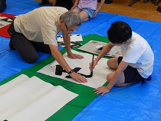 伊勢市文化政策課と三重県書道連盟の岳友会の皆様のご協力で芸術体験(書道体験)をさせていただきました。