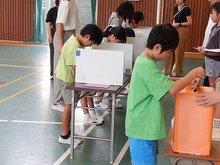 しっかり考え、自分の思いを込めて投票しました。当選した人も、おしくも当選できなかった人も、協力して上野小児童会を盛り上げてくださいね。