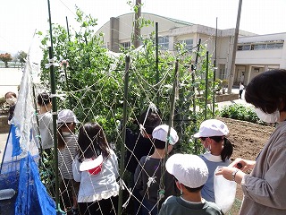 懸命に土を掘り進めると、ゴロゴロと大きなサツマイモが出現!子どもたちはびっくりし、笑顔が弾けました。地域のボラティアの方がお手伝いしてくださった畑です。