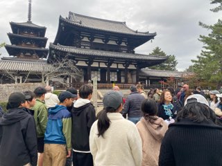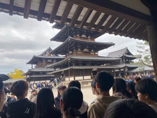 世界最古の木造建築である五重塔、金堂など荘厳な伽藍を前に、すごいなあという声が聞かれます。