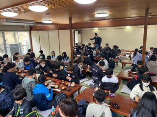 1日目の見学を全て終え、宿泊先 琵琶湖グランドホテルに向かっています。バスの中では、各クラスそれぞれ、レク係さんが中心になり、レクリエーションを楽しんでいます。