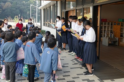 また、保育園児が来校、職場体験で学習させていただいた2年生生徒へお手紙を持ってきてくれました。とても、2年生の体験させていただいた生徒はとても喜んでいました。